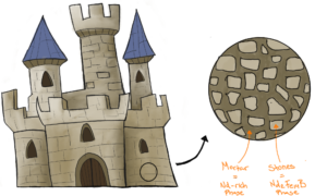 An NdFeB magnet is like a castle; the stones are the magnetic matrix phase which makes up the magnetic material. The mortar is the neodymium-rich grain boundary phase which keeps the stones held together, but makes a barrier between them. To make a strong magnet, we need strong barriers that prevent the stones from influencing each other if one fails (i.e. if a magnetic grain becomes demagnetised, it won’t cause others to do the same).