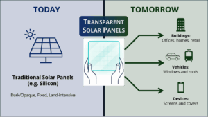 Companies such as Ubiquitous energy (see link below) are starting to commercialise this technology, with there being a real possibility of designing new greener buildings. Beyond buildings, imagine being able to charge your phone in an emergency or charge your electric car by leaving it in the sun!